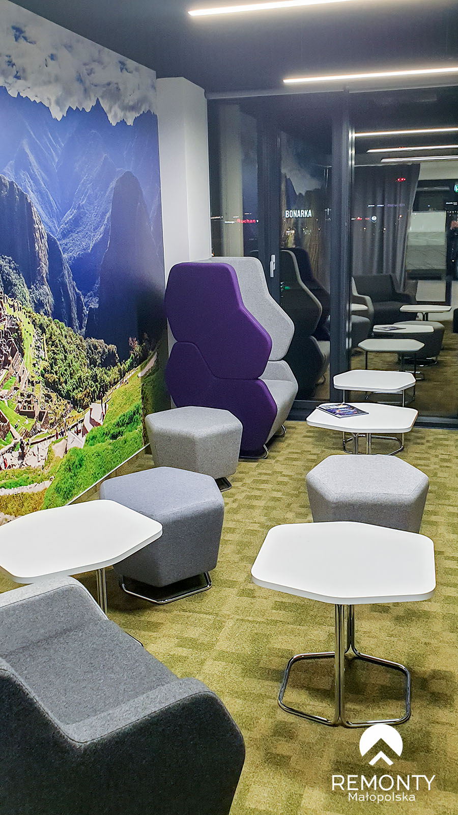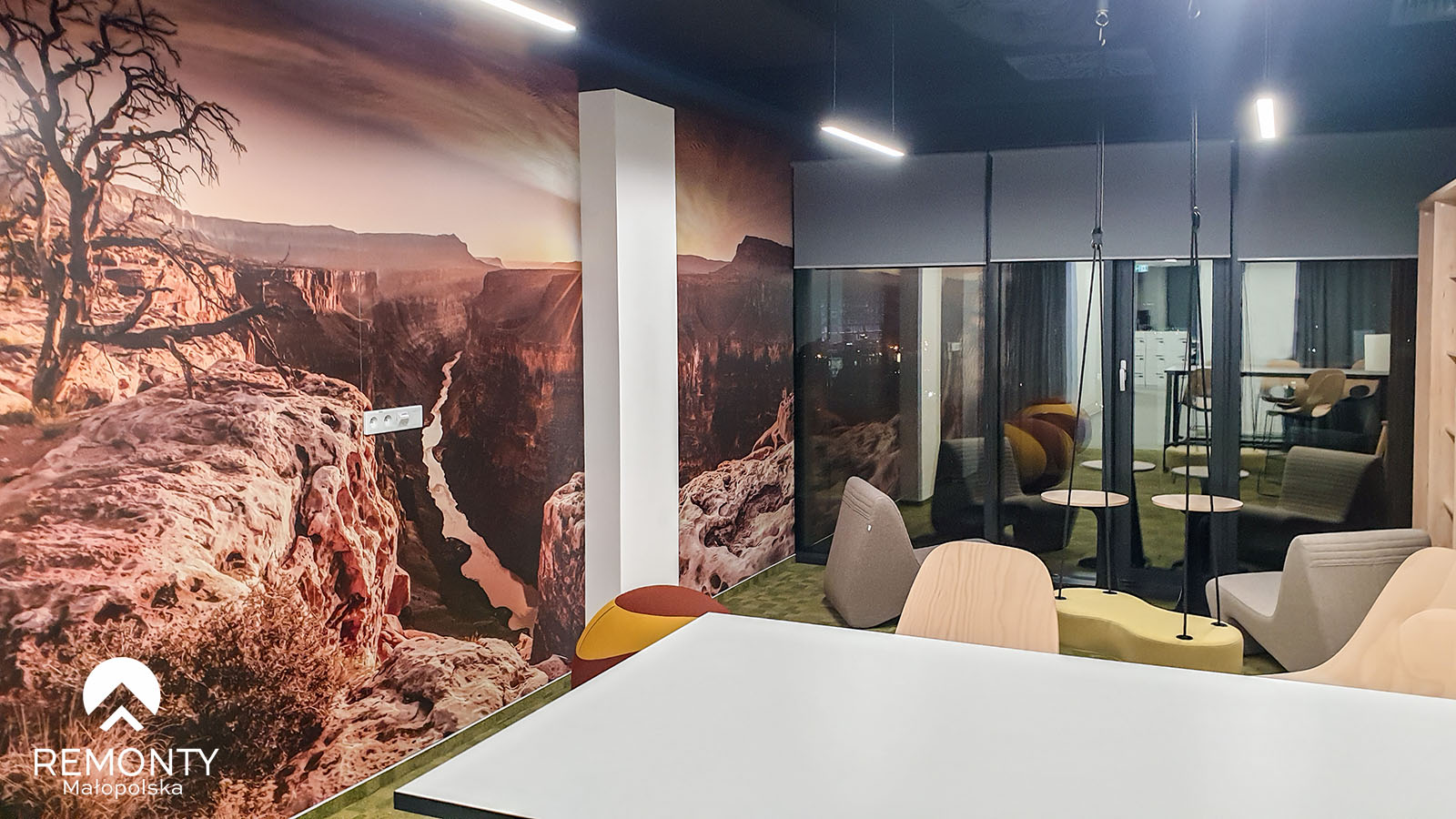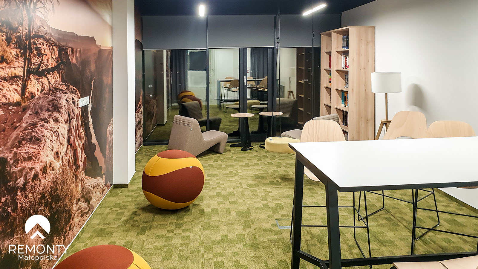 Prace wykończeniowe dużych powierzchni biurowych obejmujące także przestrzeń rekreacyjną lub socjalną nie stanowią dla nas problemu.